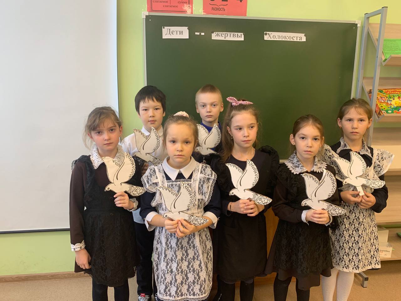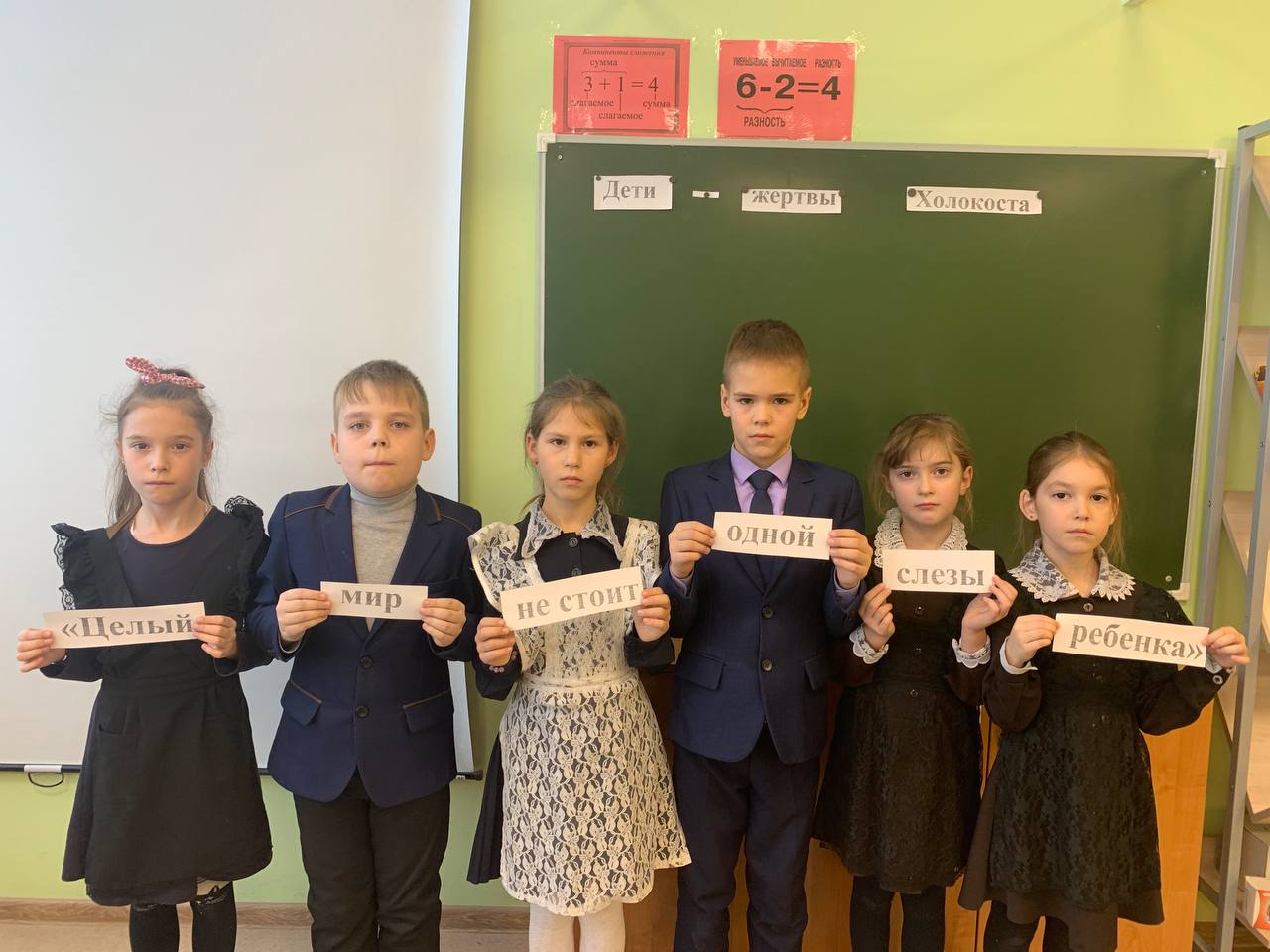 Во 2 классе прошел классный час, посвященный жертвам Холокоста. Учащиеся познакомились с трагедией Холокоста как одним из примеров бесчеловечности. Рассказ классного руководителя о еврейской девочке Анне Франк , презентация классного часа не оставили никого равнодушными и способствовали формированию толерантного отношения к людям разных национальностей, чувства сопереживания, сострадания к другим народам. Память о Холокосте необходима, чтобы наши дети никогда не были жертвами , палачами или равнодушными наблюдателями.