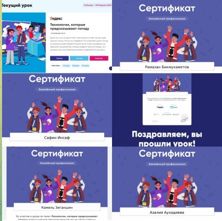 С 16 января по 5 февраля Яндекс проводит занятия в рамках всероссийского образовательного проекта «Урок цифры». Тема урока этого года – «Технологии, которые предсказывают погоду». Учащиеся 9 класса приняли участие в этом мероприятии. Школьники познакомились с IT-профессиями в метеорологии, узнали, как происходят процесс измерения, анализ и прогнозирование атмосферных явлений с помощью технологий.