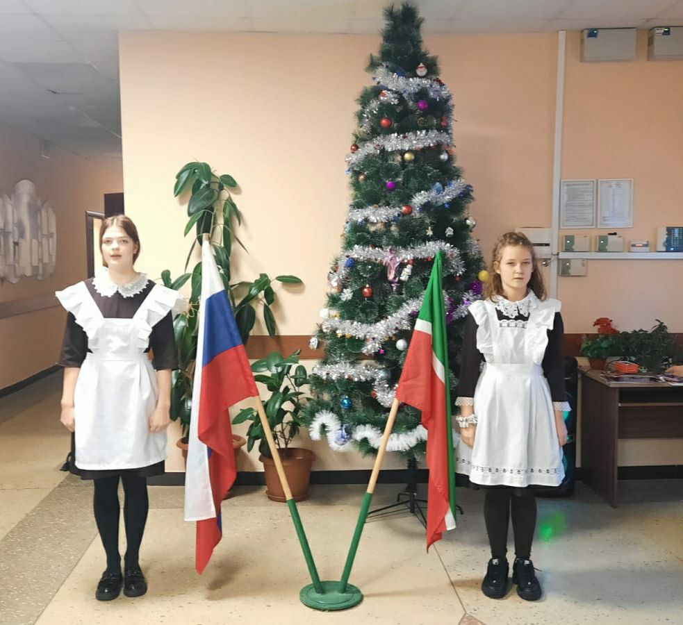 Так незаметно бежит время. Последняя неделя 2-й четверти началась с выноса флагов и исполнения гимнов.Почетное право выноса флага Российской Федерации и флага Республики Татарстан на этой неделе было предоставлено Рвачевой Каролине и Яшагиной Наталье, рекордсменам по количеству призовых мест на муниципальном этапе Всероссийской олимпиады по различным предметам