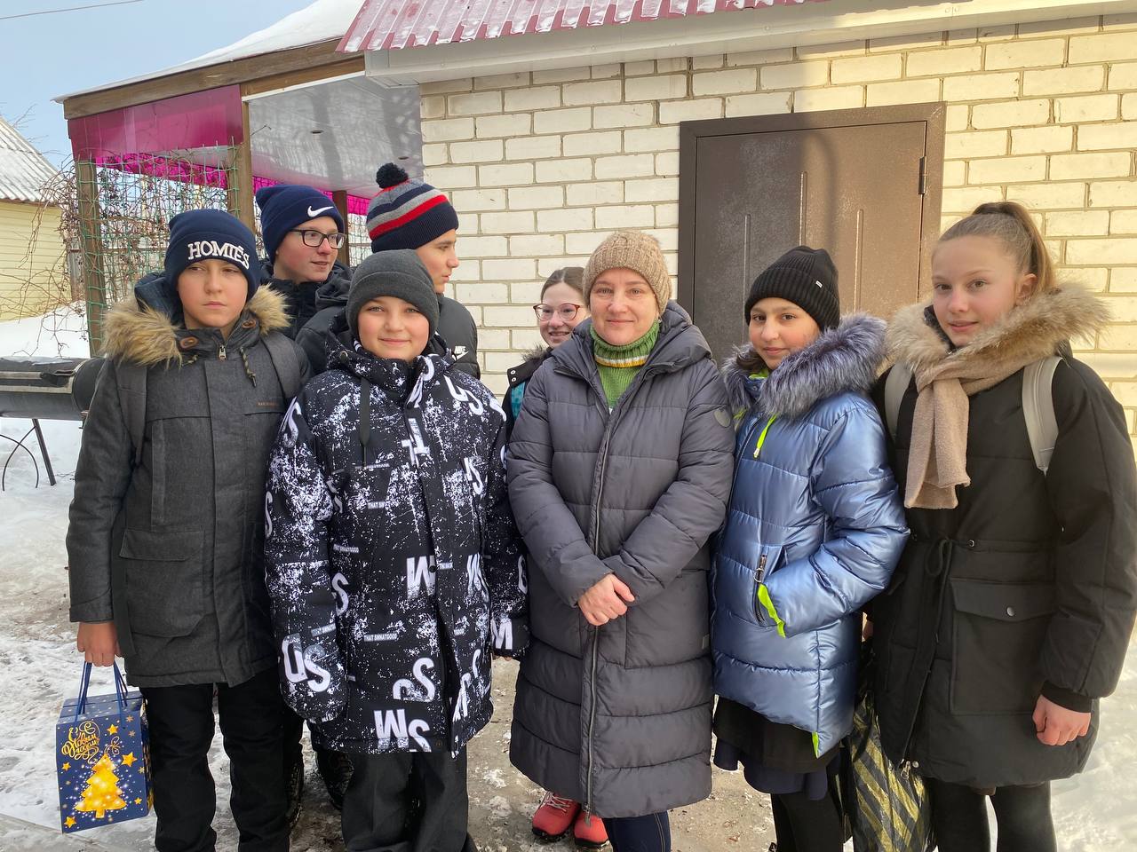 27 декабря учащиеся 7 класса поздравили сестру мобилизованного Чумакова Михаила с наступающим праздником.