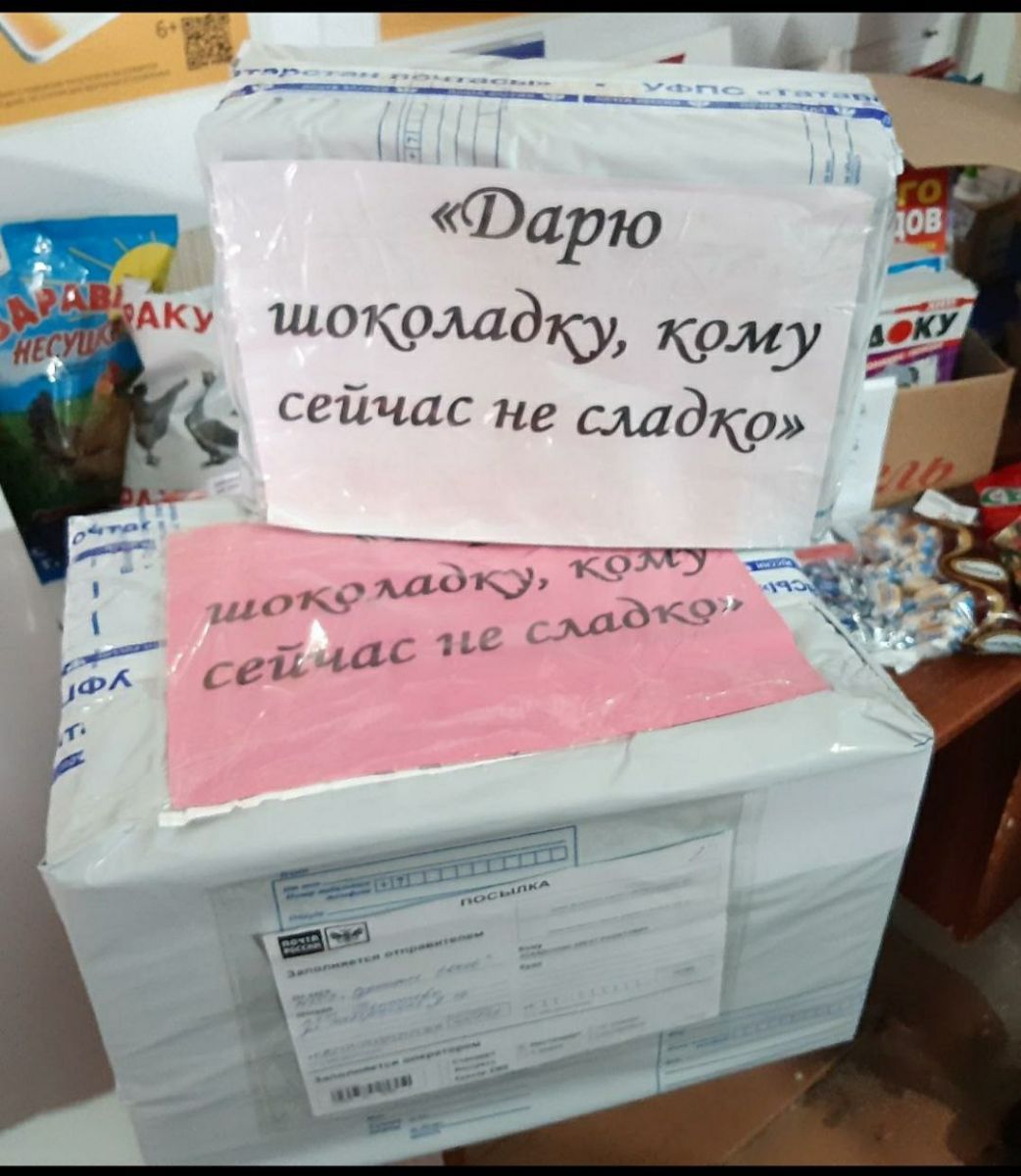 12 декабря в нашей школе стартовала акция "Дарю шоколадку, кому сейчас не сладко". Почти каждый ученик нашей школы принёс шоколадку, на которой написал добрые слова нашим дорогим ЗАЩИТНИКАМ. В акции также приняли участие все учителя и работники школы. Мы надеемся, что наши шоколадки поднимут настроение солдатам, а добрые слова от ребят напомнят им, что они лучшие и Победа обязательно будет за нами.