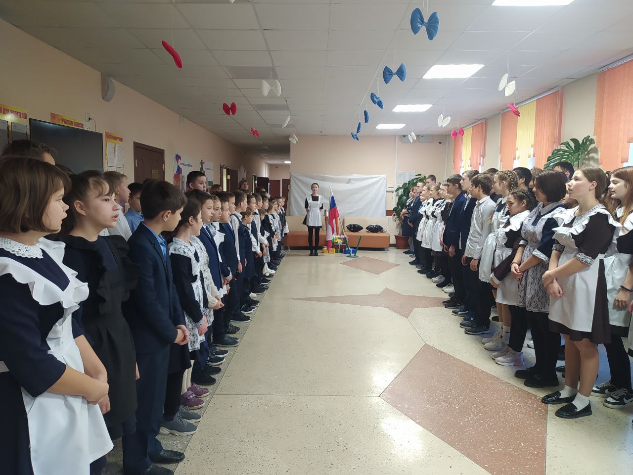Традиционное начало недели. 14 ноября церемонию выноса Флагов России и Татарстана предоставили победителю и призеру республиканского конкурса "Слово о педагоге" Агафоновой А. и Колесникову Н.Затем на линейке наградили призеров соревнований по бадминтону. Желаем всем победителям и призёрам дальнейших успехов!
