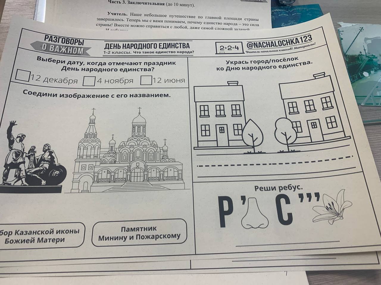 Во 2 классе прошло очередное внеурочное занятие по теме ‘Что такое единство народа?». Учащиеся просмотрели видеоролики, познакомились с историей праздника «День народного единства». На виртуальной экскурсии по Красной площади ребята познакомились с памятником Минину и Пожарскому, а также с Собором Казанской иконы Божией Матери. Закончилось внеурочное занятие выполнением интерактивных заданий и интересных познавательных заданий в рабочих листах.