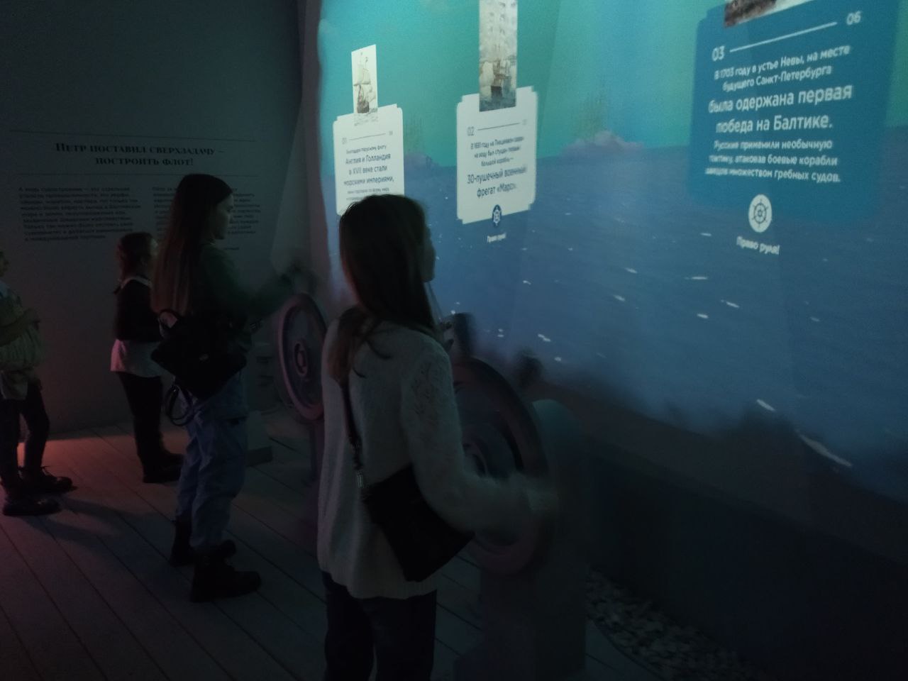 Экскурсия в исторический парк "Россия - моя история" в г. Москва по теме "Пётр I. Рождение империи (к 350-летию со дня рождения)"Изучить эпоху Петра I можно благодаря «живым» современным технологиям, управлять которыми можно жестами. Экспозиция, сформированная из реальных и цифровых предметов, объемного звука и художественного света, доносит масштаб свершений петровского гения через зрительные и вербальные ощущения. В залах выставки расположились несколько ключевых тематических зон, объединенных единой линией развития России, которую определил сам Петр I. Материал проекта показан через призму личности государя и его сподвижников.События в хронологическом порядке, интересные детали и факты занесены на специальные интерактивные панели. Читать в удобном для себя темпе или изучать историю вместе с экскурсоводом интересно и взрослым, и детям. Учащиеся нашей школы просто в восторге от этой экскурсии.
