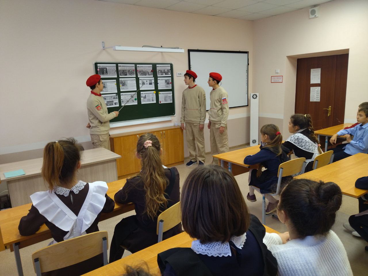 Классный час "Герои нашего времени" провели Юнармейцы для учащихся 5-6 классов. Целью классного часа является пробуждение интереса к изучению отечественной истории культуры , воспитание гражданственности и патриотизма , формирование и конкретизация ПОНЯТИЯ «Родина » , осознание собственного отношения к ней , формирование представления о культурном и историческом единстве российского народа и важности его сохранения . Задачи : 1. Информировать обучающихся о спецоперации Украине , проведения и причинах результатах . 2.Побудить оказать реальную помощь борцам за Новороссию и пострадавшему гражданскому населению .