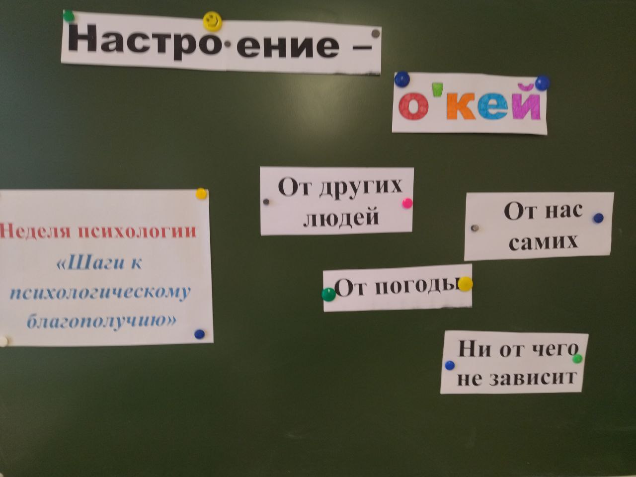 В рамках недели психологии "Шаги к психологическому благополучаю" в 5-6 классах проведен классный час "Настроение окей", направленное профилактике эмоционального напряжения в детской среде .