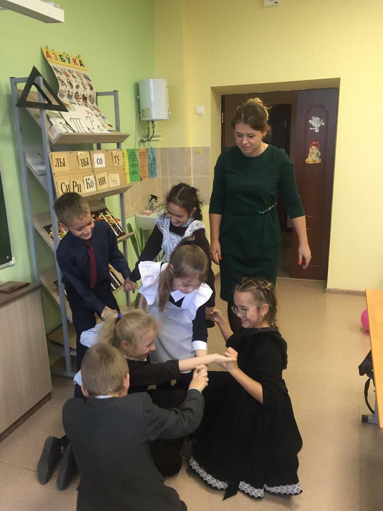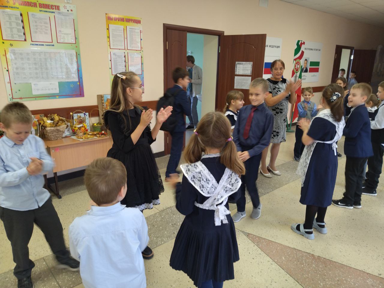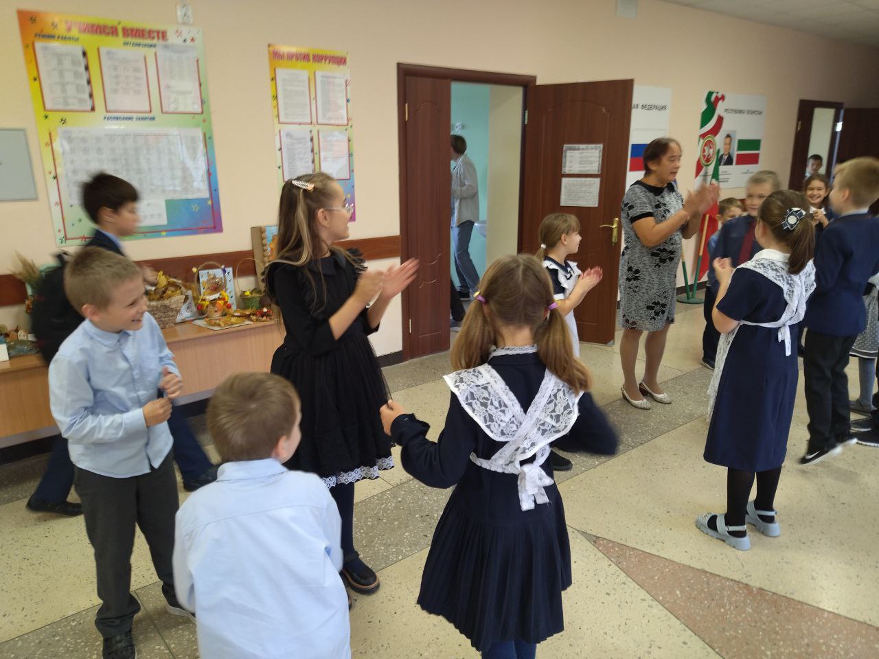 Члены школьного отряда ШУС "Маленькая страна" проводят игры и развлечения для маленьких школьников.