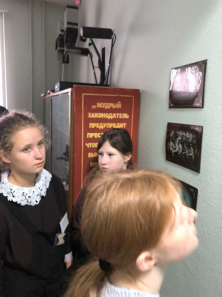 7 октября учащиеся нашей школы побывали на экскурсии в отделе полиции. В гости к стражам порядка пришли ученики 7-8 классов.Сначала ребята посетили дежурную часть. Они узнали, что данное подразделение несёт службу в круглосуточном режиме. Затем школьников познакомили со структурой органов внутренних дел и различными службами полиции: следственным отделом, отделением дознания, подразделениями уголовного розыска, участковых уполномоченных полиции и по делам несовершеннолетних.Особый интерес у школьников вызвал рассказ инспектора ПДН Галимовой Н. М. В ходе визита подросткам напомнили о том, какими правилами и обязанностями они обладают, с какого возраста и за какие правонарушения несовершеннолетние могут быть привлечены к ответственности, а также гостям разъяснили как не стать жертвой преступления.Продолжилась экскурсия в отделе кинологической службы, где стражи порядка познакомить юных гостей с работой подразделения. Также школьники посетили музей отдела полиции.