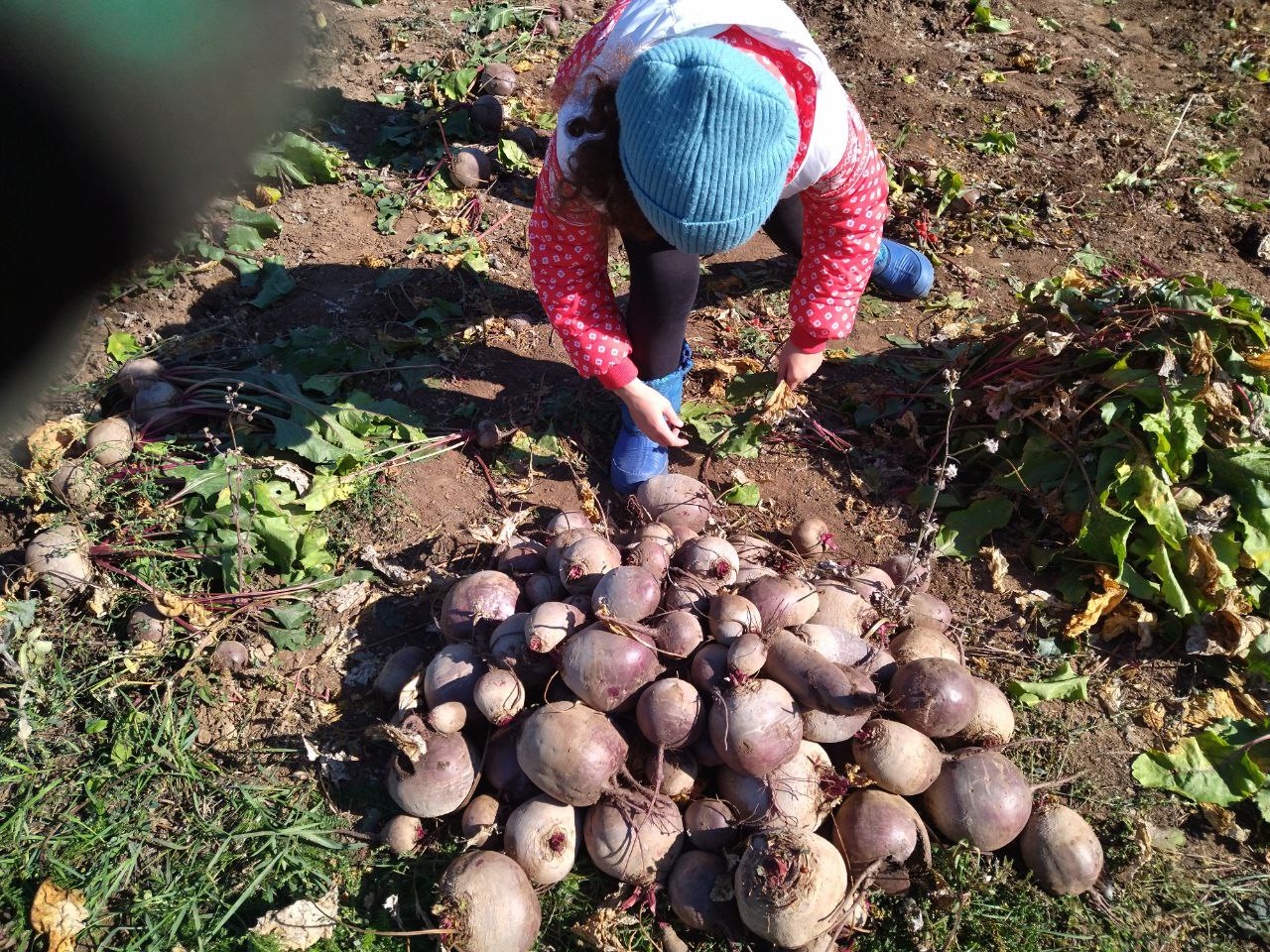 Сегодня учащиеся и педагоги убирали урожай морковки и свёклы.
