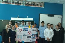 Обучающимися 9 класса был подобран материал и оформлен плакат "Крым наш. Вместе навсегда!" ко Дню воссоединения Крыма с Россией.