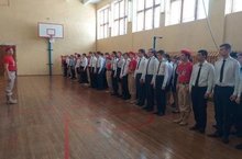 Ежегодный смотр строя и песни прошёл в школе . В конкурсе приняли участие учащиеся с 5 по 11 класс. На смотре присутствовали : военный комиссар Мещанов А. и директор кадетской школы Киселёв А.