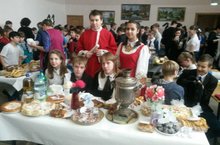 Собирайся народ! Призывы, потешки, яркие костюмы и музыка сопровождали веселую школьную ярмарку. Хлебосольные столы и предпринимательский дух встречали посетителей праздника. Яркое участие и детей, и родителей на благотворительной ярмарке запомнятся надолго.