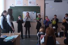 Сегодняшнее утро в школе началось с девиза «Космос – это мы». Ребят встречали активисты с информационными стендами, где были размещены фотографии космонавтов и информация о полетах. Сообщения сопровождалось записями с орбиты, из учебных центров космонавтов. Ребята смогли услышать голоса и Ю. Гагарина, и А. Леонова, и В. Терешковой. Кроме того, на переменах звучали музыкальные композиции по данной тематике.
