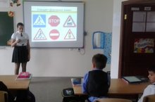 25 сентября 2017 года в рамках "Недели ПДД" учащиеся 11 класс под руководством Зарифулиной З.Х. провели экскурсию по безопасному движению для учеников 2 Б класс. Ребята рассказали какие знаки окружают школу, как по ним ориентироваться, повторили запрещающие, информационные и предупреждающие знаки. Вспомнили, какие знаки есть в посёлке и что они обозначают. Вспомнили знак "зебра" или пешеходный переход, вспомнили по какой стороне необходимо двигаться на проезжей части в роли пешехода.