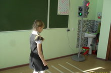 В рамках Глобальной недели ПДД руководитель школьного отряда «Юный инспектор» Володина Л.Н. провела с ребятами тренировочные упражнения с применением светофора.