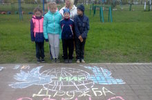 12 мая третий класс вместе с вожатыми 7 класса принял участие в муниципальном этапе республиканского конкурса рисунков на асфальте "Краски детства"