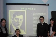 В рамках республиканского "Марша Памяти" и проведения агитационно воспитательной работы среди школьников в 7-8 классов было проведенно познавательное мероприятие "Шигирь бэйреме" посвященное 110-й годовщине со дня рождения татарского поэта Мусы Джалиля. Организовали мероприятие учителя татарского языка и литературы: Зайнутдинова Ф.К и Даминова М.Р.
