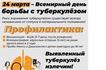 Ежегодно 24 марта по инициативе ВОЗ проводится Всемирный День борьбы с туберкулезом, целью которого является привлечение внимания общества к проблемам