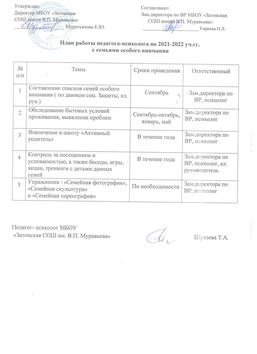 План-график работы школьного психолога на 2021 - 2022 учебный год
