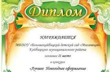Каждый год с наступлением зимы у парадного входа в детский сад наш коллектив создает шедевры из снежных построек на радость детям. Так и в этом году, несмотря на скудное выпадение снега, мы не оставили детей без сказки... В связи с конкурсом объявленным районной Администрацией на лучшее Новогоднее оформление административных зданий и объектов торговли, расположенных на территории Кайбицкого муниципального района подхлестнуло ещё больше инициативу коллектива на творчество, на создание снежных скульптур. Наконец, вчера районной комиссией были подведены итоги районного конкурса. Приятной неожиданностью для нас явилось официальное вручение ДИПЛОМА за II место в конкурсе "Лучшее Новогоднее оформление административных зданий и объектов торговли, расположенных на территории Кайбицкого муниципального района", от 29.12.2012г. (Фотогалерея).