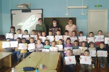 Бүген музыка җитәкчесе балалар белән Космонавтика көне турында әңгәмә үткәрде. Балалар космос турында бик күп яңалык белән танштылар.