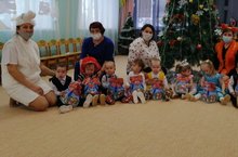 Сегодня в детском саду начались Новогодние утренники.Воспитанники получили подарки от Деда Мороза и поздравительные открытки от имени Главы администрации нашего района А.И.Рахматуллина.