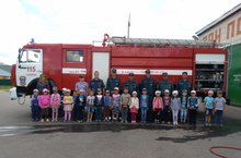 Сегодня в честь дня пожарной безопасности с воспитанниками старшей группы совершили экскурсию в пожарную часть.Нас там встретил начальник пожарной части Дамир Рашидович.Он рассказал о профессии пожарных и вместе с подчинёнными продемонстрировал свою работу.