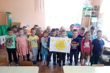 Сегодня в детском саду провели день солнышка.С детьми были проведены беседы на тему "Какую пользу приносят солнце,воздух и вода".В старшей группе воспитатель Гузел Ильгизяровна провела коллективную работу нетрадиционного рисования солнышка.Дети лучи солнца рисовали ладошками.Им этот способ рисования очень понравился.