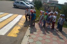 Сегодня сотрудники ГИБДД с воспитанниками провели акцию "Шагающий автобус".