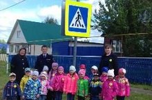 В целях предупреждения детского дорожно- транспортного травматизма и закрепления Правил дорожного движения, а также отработки практических навыков безопасного поведения по дороге в детском саду состоялась акция "Шагающий автобус". Перед началом мероприятия, начальник Буинского отделения отдела профилактики г.Казань ГБУ "Безопасность дорожного движения" Сергудаева А.В. и инспектор ОГИБДД МВД старший лейтенант полиции Ахметов И.Ф., напомнили детям участвующим в акции Правила дорожного движения, провели инструктаж. Все участники получили от них подарки, светоотражающие значки.