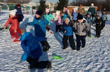 Сегодня старшая группа на занятии физкультуры вышли на лыжах. В программе детского сада "Миляшкай" предусматривается "Обучение ходьбе на лыжах".