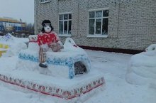 Сотрудники детского сада занимаются созданием праздничной атмосферы и на территории детского сада.