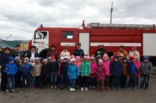 Сегодня воспитанники подготовительной, старшей группы ходили на экскурсию в пожарную часть. Начальник пожарной части Ибрагимов Д.Р. провел экскурсию с детьми, Сотрудники пожарной части продемонстрировали детям свою работу: выезд пожарной машины из гаража по вызову, тушение пожара с помощью воды, как срезают металлический материал. В конце детям разрешили сесть в пожарную машину по очереди. Дети были в восторге.