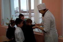 Сегодня нашу школу посетила с очередным медицинским осмотром фельдшер Багаевского ФАП. Уразова Эльмира проверила детей на педикулез, провела беседу на тему: «Почему нужно есть фрукты и овощи?».