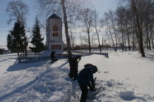 В завершении весенней недели добра, учащиеся школы сходили к памятнику и вычистили к нему дорогу. -