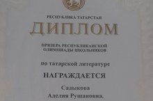 4-6 нчы февральдә рус мәктәбендә укучы татар балалары өчен татар әдәбиятыннан Республика олимпиадасының йомгаклау туры үтте. Әлеге олимпиадада мәктәбебезнең 3 укучысы катнашты: Садыкова Аделия ( 7 нче сыйныф), Булатова Лилия, Хәмидуллина Әлфиназ (11 нче сыйныф). Садыкова Аделия ( укытучысы Хәмидуллина Алсу Фәрит кызы) олимпиада призеры булды. Аделияне зур җиңүе белән котлыйбыз, алга таба да уңышлар телибез!