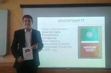 Сегодня в 9а классе прошел Парламентский урок. Разговор шел о том, что наша республика имеет свой Основной закон – Конституцию РТ. И правила, которые в ней установлены, не противоречат тем, которые записаны в Конституции Российской Федерации. Ныне действующая Конституция Республики Татарстан была принята Верховным Советом Республики Татарстан в 1992 году, и 6 ноября основному закону нашей страны исполняется 25 лет.