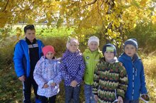 Осень красотой.В прекрасный осенний денёк мы отправились на экскурсию. Ребята наблюдали за осенними изменениями в природе, любовались её красотой, а также собрали много красивых листьев, которые пригодятся нам для аппликаций.