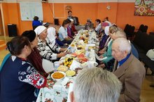 Без бүген авылыбызның иң өлкән кешесе Рәшидә әби һәм озак еллар безнең мәктәптә укытучы булып эшләгән Гөлгенә апаларда кунакта булдык. Аларны без өлкәннәр көне белән котладык.Рәшидә әби укучыларга үзенең акыллы киңәшләрен бирде.Гөлгенә апалары тәмле алма белән сыйлады.