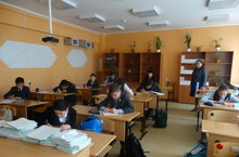 Сегодня республиканскую контрольную работу (РКР) выполняли по следующим предметам: в 6 -7-х классах - по русскому языку и в 8-х классах - по истории. Всего в этих классах обучаются 99 детей, отсутствующих нет. Проверка работ будет осуществляться в школе, учителями-предметниками. Ответы к заданиям и критерии будут получены по эл.почте в день проведения РКР в 16.00