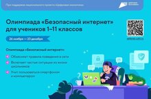 Онлайн-олимпиада продлится до 23 декабря для учеников 1-11 классов. Она направлена на повышение уровня киберграмотности. Школьники смогут проверить и улучшить свои навыки безопасного пользования интернетом и цифровыми устройствами на образовательной платформе Учи.ру.