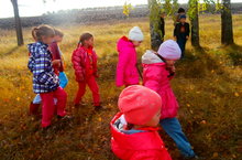 в ближайшую лесопосадку. Дети любовались осенними пейзажами, наблюдали изменения в живой и неживой природе, различали признаки съедобных и несъедобных грибов и растений. -