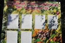На нашем приусадебном участке сегодня появился новый стенд, который был установлен вместо сломанного шквалистым ветром его предшественника. Новый стенд изготовлен из металла. Мы надеемся теперь сильные ветры ему нестрашны. Здесь располагается важная информация о школьном учебно-опытном участке: схема пришкольного участка, положение, а также инструкции по технике безопасности.