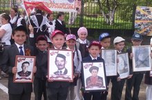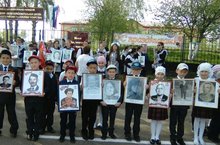 Из нашего класса Гумеров Ильфир, Хасанов Аяз, Гарифуллин Ризван достойно несли портреты своих дедушек.