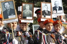 Шествие людей с плакатами, на которых изображены родственники, воевавшие в Великую Отечественную Войну, выглядело очень трогательно. Мы испытывали чувство гордости за свою страну. Ведь в том строю шли не мы, а наши бравые дедушки и бабушки, и радостно было на душе и грустно.