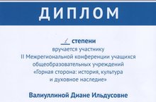 Ученицы 10 класса школы Валиуллина Диана и Гарифуллина Чулпан представляли Кайбицкий район на II Межрегиональной конференции учащихся «Горная сторона: культура, история и духовное наследие». В ее работе приняли участие так же учащиеся 9-11 классов Верхнеуслонского, Буинского, Апастовского, Зеленодольского районов Татарстана, одного из районов Башкортостана. Всего на конференции ее участниками в разных номинациях было представлено 60 работ, оценивало которые компетентное жюри. В жюри вошли научные деятели КФУ, сотрудники крупнейших музеев Татарстана. Наши девочки выступили очень достойно и завоевали призовые 1 и 3 места! Научному руководителю учителю истории Хайруллиной А.Р. было вручено благодарственное письмо КФУ за подготовку победителей. Поздравляем с победой !