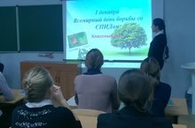 Классный час, в 8 Б классе, посвященный всемирному дню борьбы со СПИДом, провозгласил: «Предупрежден – значит вооружен!»