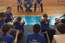 Среди средних классов идет идет соревнование по сдаче нормативов ГТО весенней сессии по поднятию туловища лежа на спине.