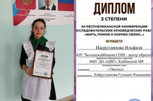 Учащаяся 10 класса, воспитанница объединения "Моя малая Родина" Насрутдинова Ильфизя приняла участие и удостоилась диплома 3 степени в XII Республиканской конференции исследовательских краеведческих работ "Жить, помня о корнях своих.." . Молодец! Успехов в дальнейшем!
