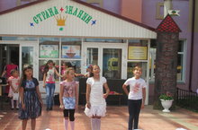 <span lang="TT" times="" new="" roman',="" serif;"="">Сегодня во дворе школы чудом появились очень милые зверьки и животные. Такое чувство, будто они все жили здесь, но только в последние дни лагеря показались чтобы попрощаться с детьми. Это лягушка-поливалка, около фонтана лежит крокодил раскрыв пасть, улитка с черепахой нежатся на солнце среди булыжников, ослик, наконец, в своём загоне и многое другое...